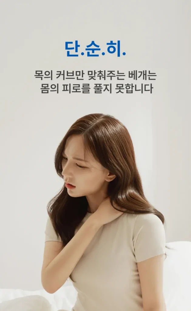 스마트폰과 컴퓨터 사용이 많은 현대인들은 대부분 거북목, 일자목 등 목 건강 문제를 안고 있습니다. 잘못된 자세로 인한 경추 불균형은 수면 중에도 이어져 아침에 일어나면 목이 뻐근하고, 두통이 생기며, 개운한 느낌이 없습니다.